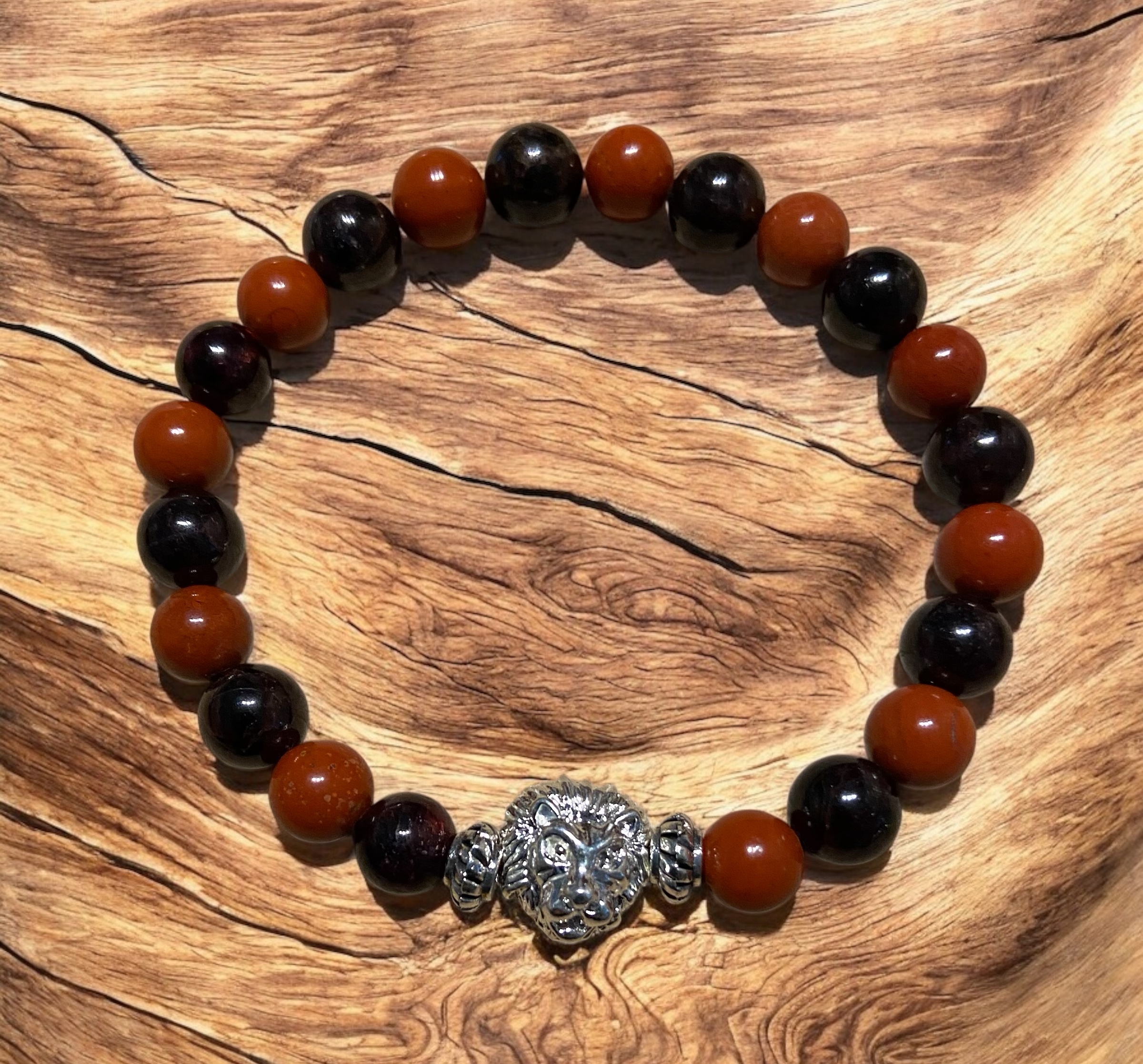 Jaspe rouge, grenat, breloque lion