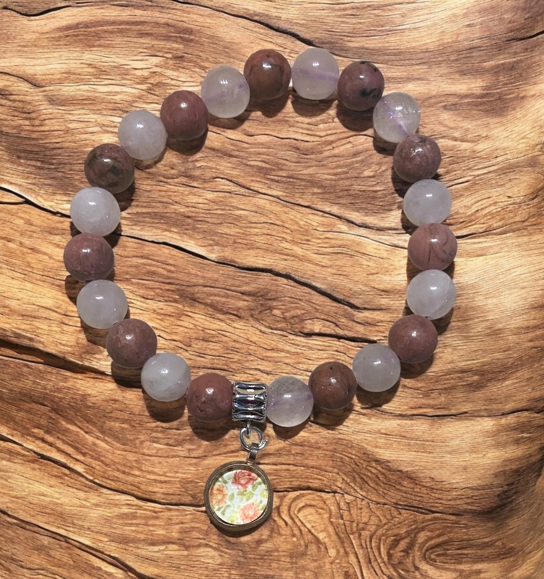 Rhodonite, Quartz rose, breloque rose