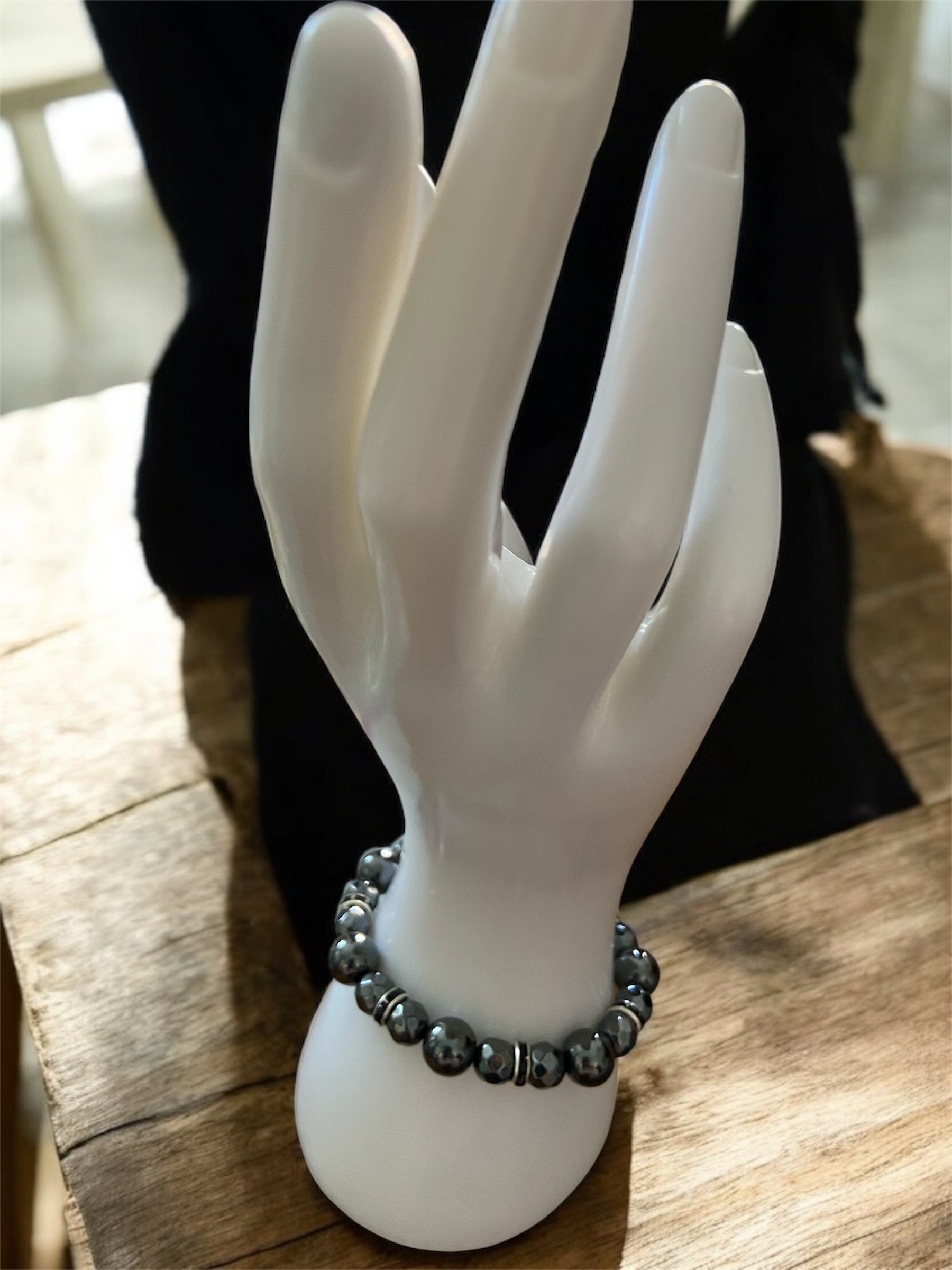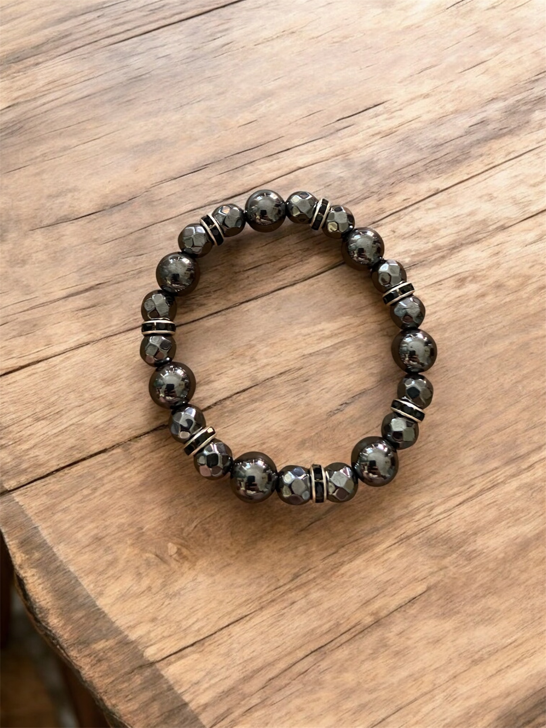 Bracelet en pierres naturelles : perles 10mm, perles facettées 8mm et intercalaires strass en acier inoxydable