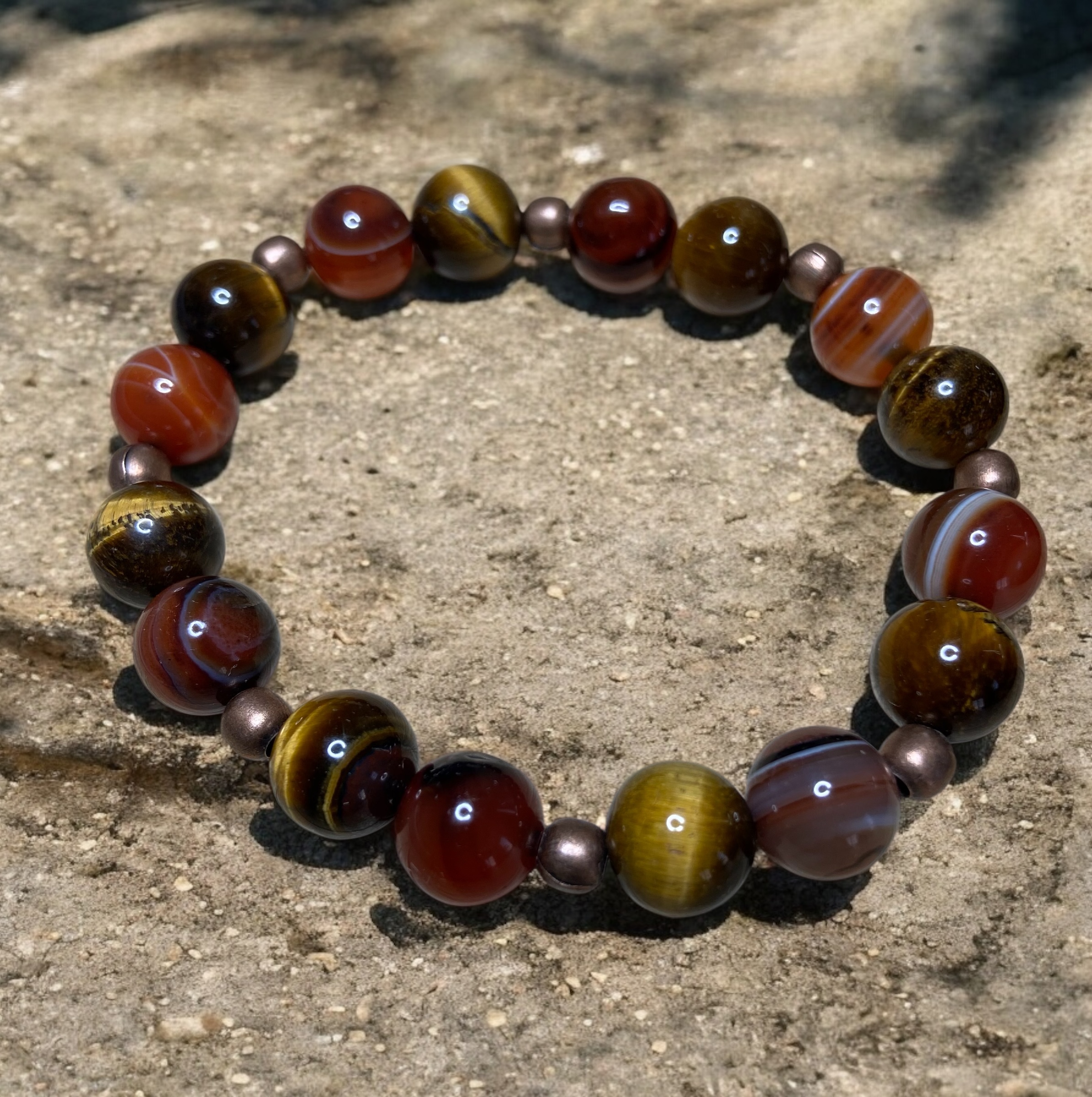 Oeil de tigre et Sardonyx : perles 10mm