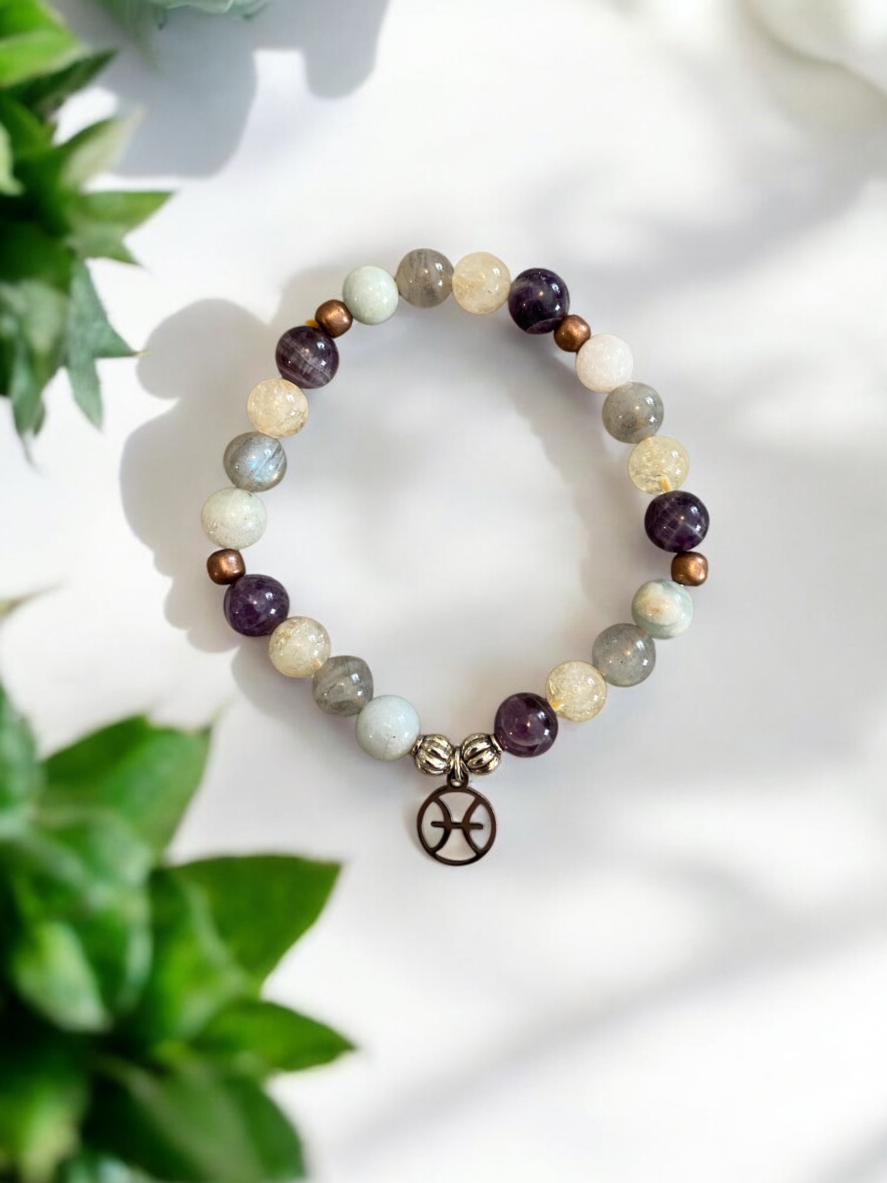 Aigue-marine, Améthyste, Citrine chauffée, Labradorite