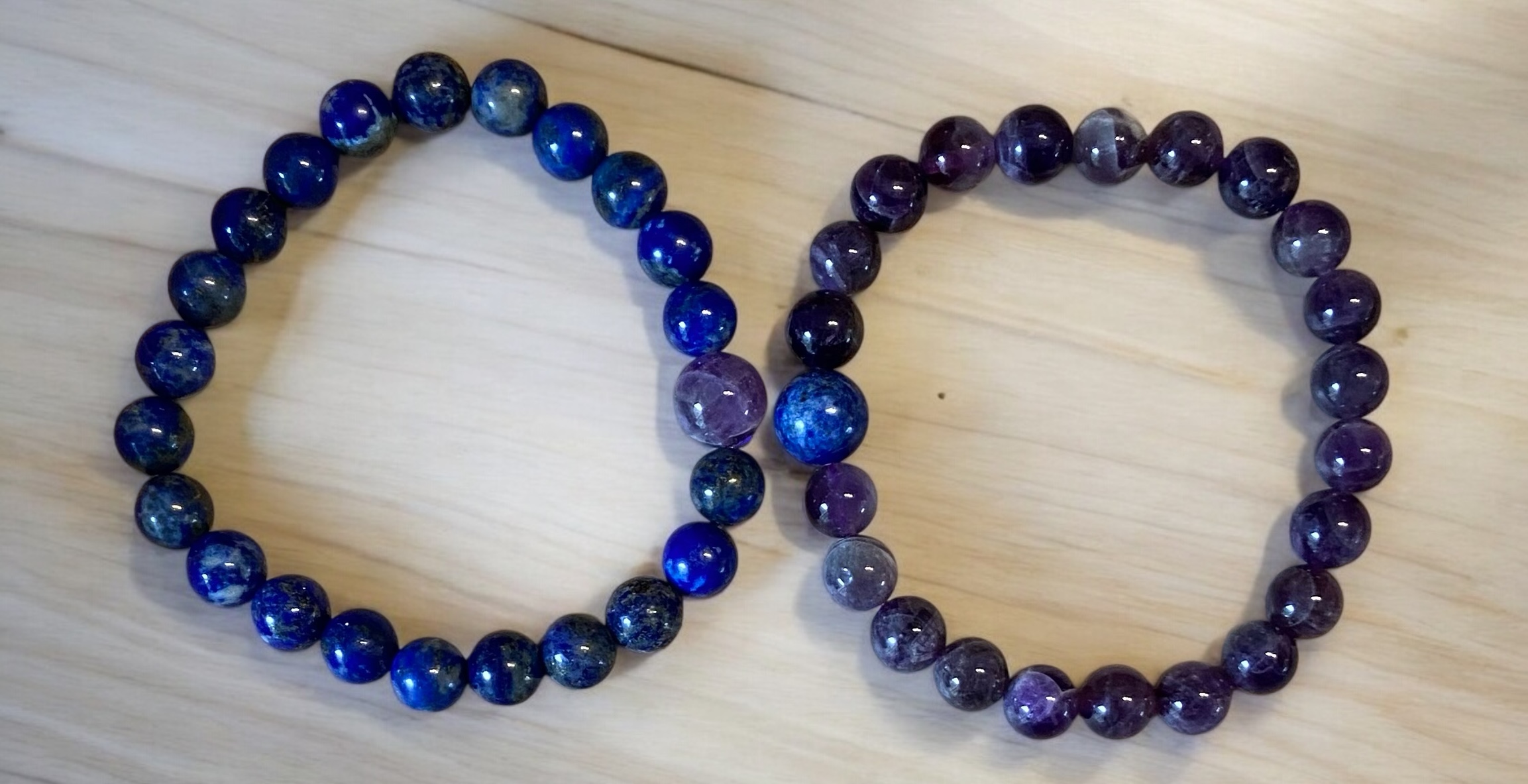 Bracelets connectés Améthyste et Lapis-Lazuli : perles 8mm, une perle 10mm
