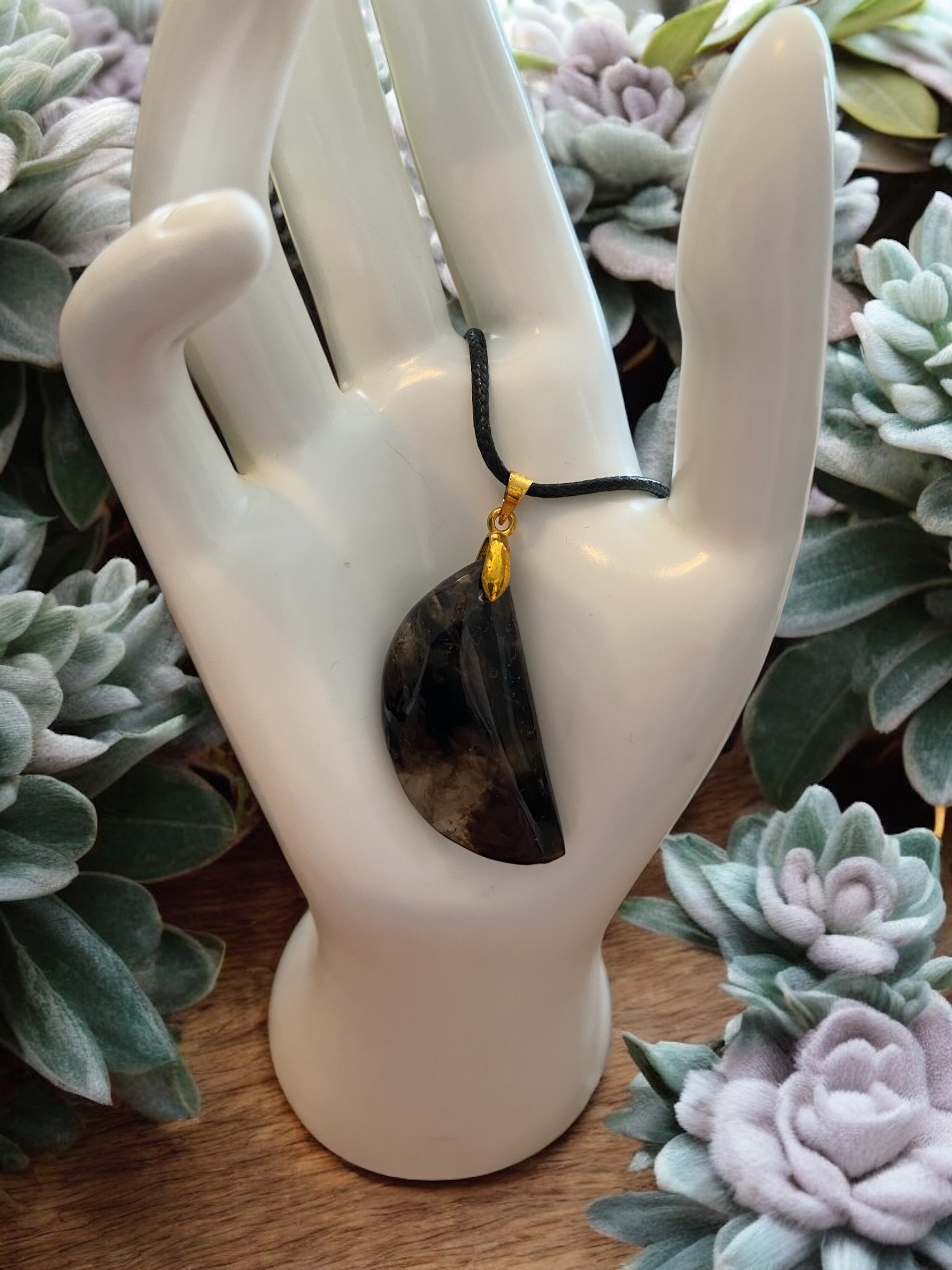 Pendentif en pierre naturelle, vendu avec le cordon ciré (42-48cm)