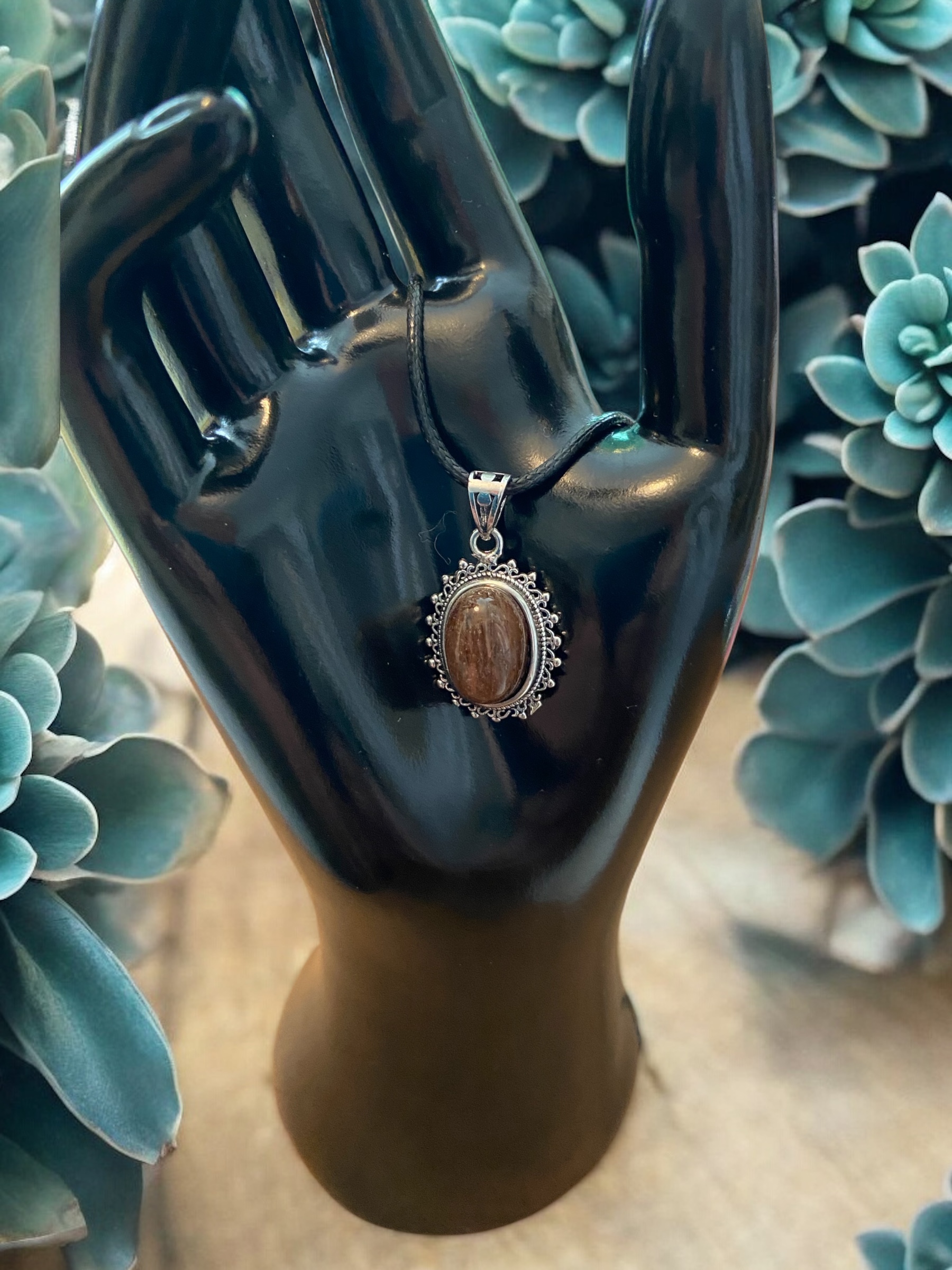 Pendentif en pierre naturelle et acier inoxydable, vendu avec le cordon ciré (42-48cm)